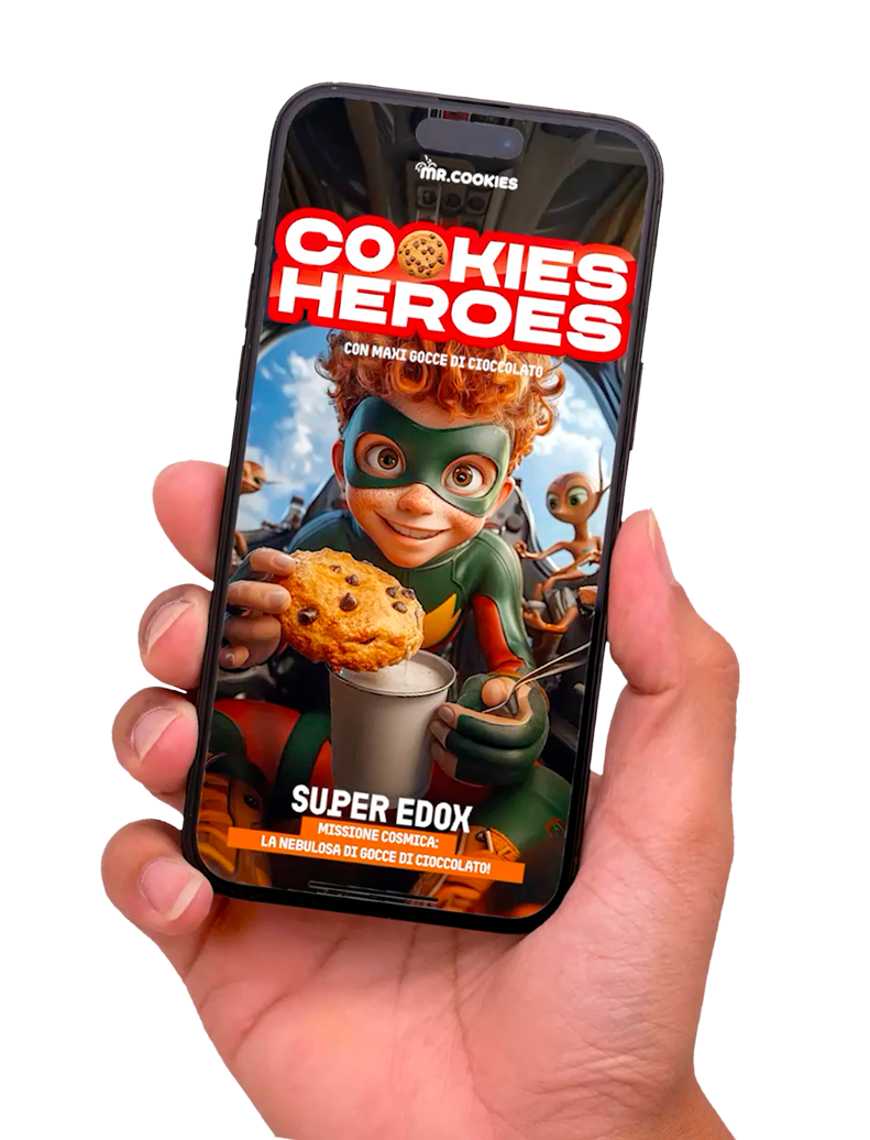 Punta la fotocamera, scansiona il QR Code e… AZIONE! Il pacco di biscotti esplode in un’animazione spettacolare. Dalla scatola al video in un secondo netto. Preparati allo spettacolo. 🍿